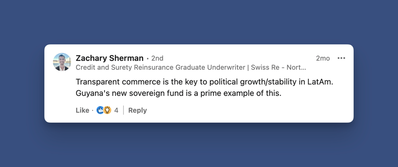 Zachary comments on our chart about sovereign wealth funds about those funds to drive growth to transparency.
